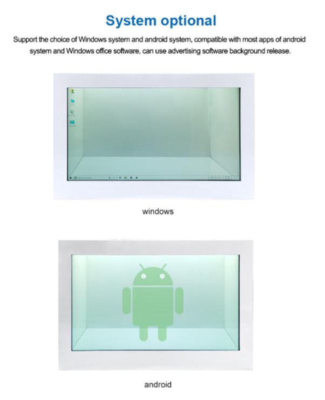 2 | Transparent screen parameter | Lcd screen | 55 inch(16:9)A grade LED backlight |